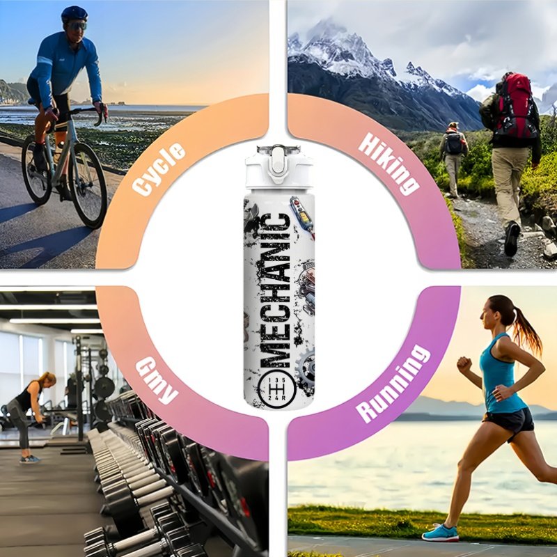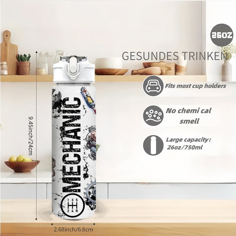 1 bouteille d’eau sur le thème de la mécanique avec motif d’outils – 750 ml/26 oz, couvercle à levier étanche, plastique durable pour salle de sport, sport, voyage, yoga, course à pied – Construction robuste pour la maison et l’extérieur