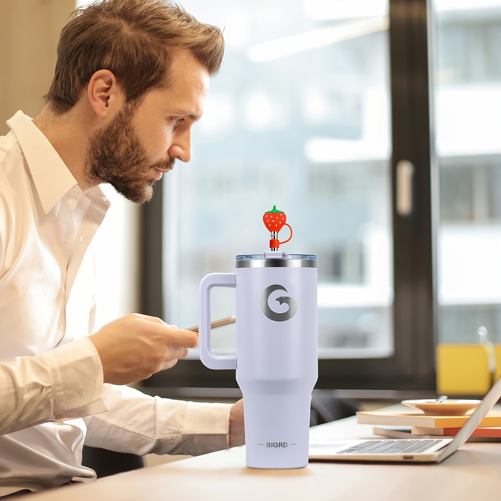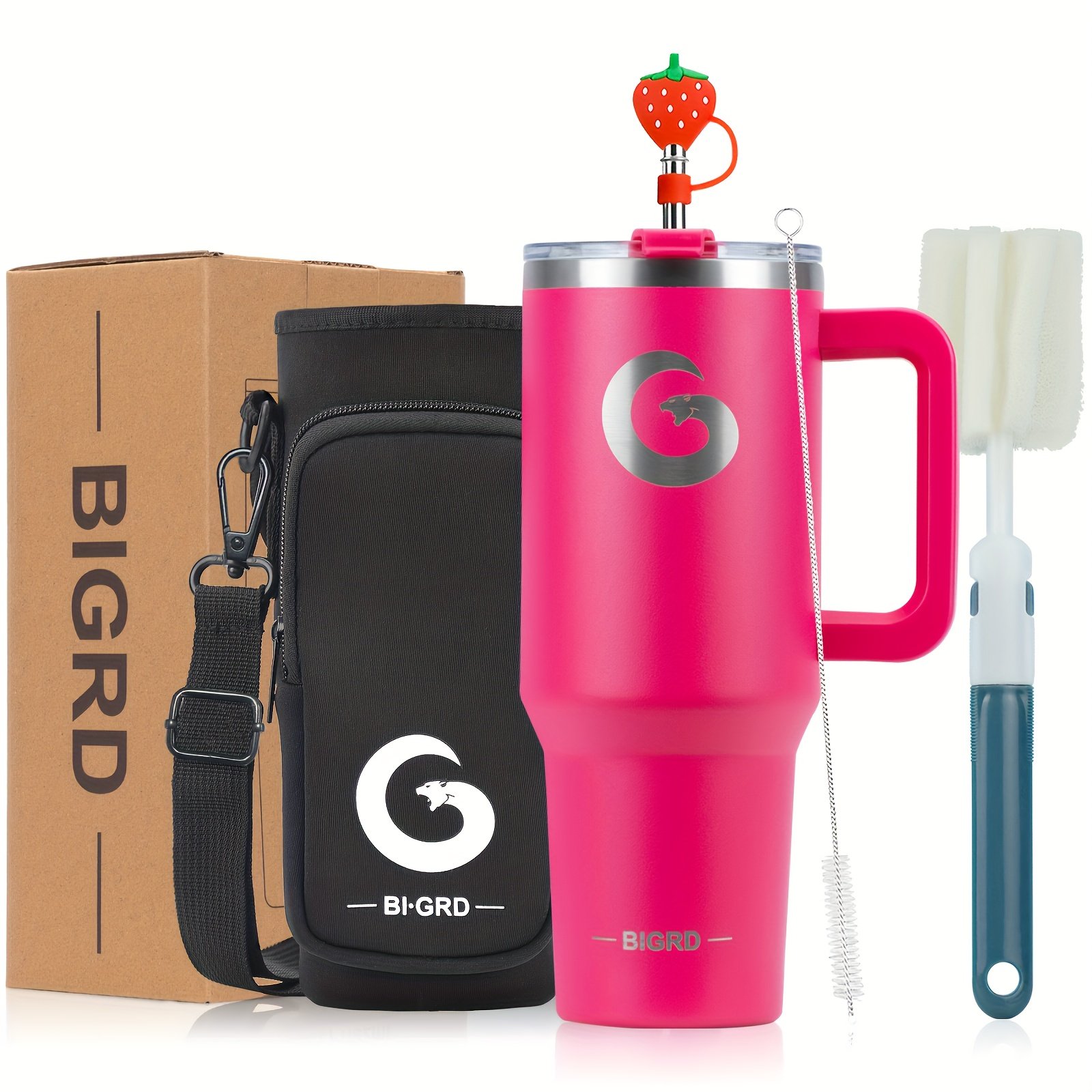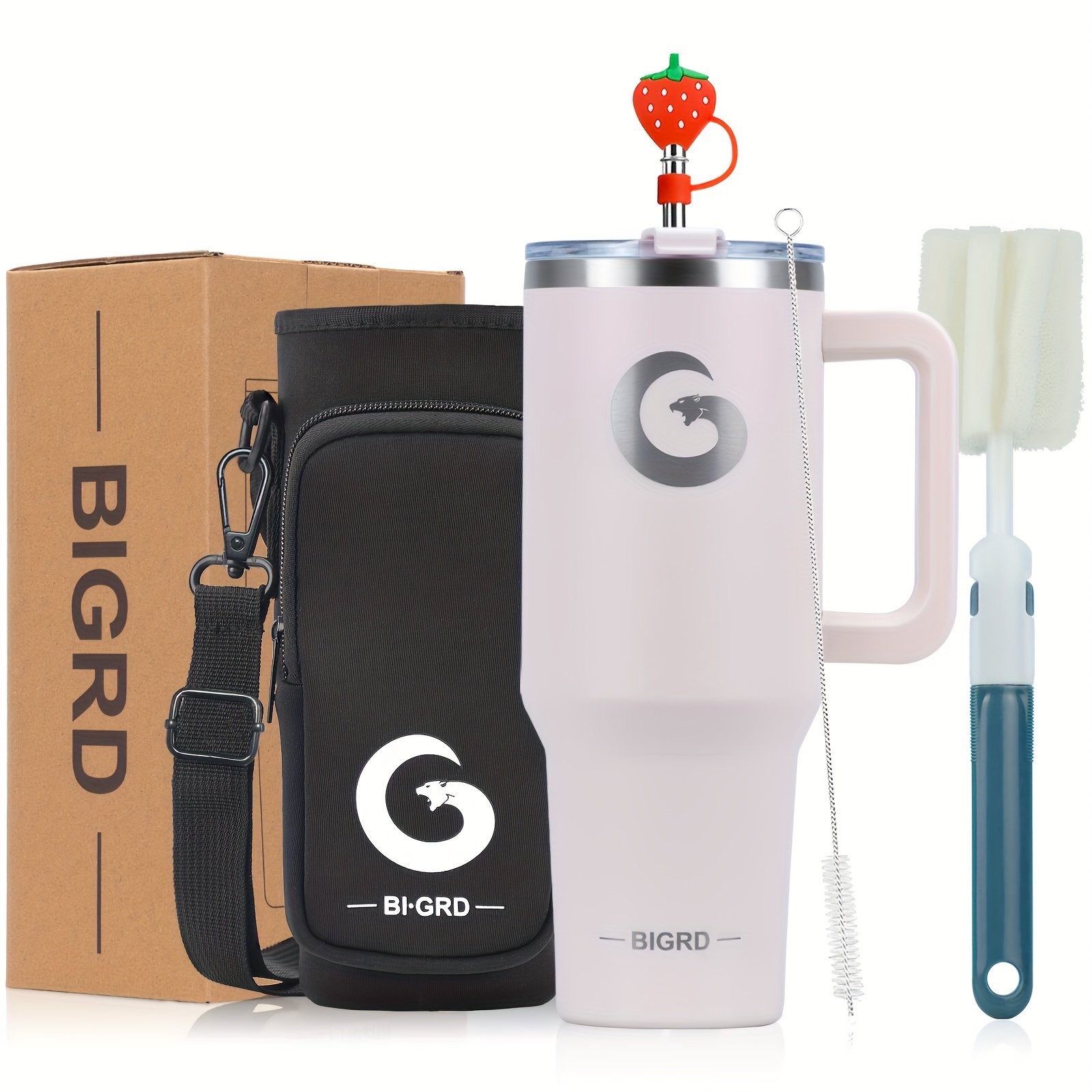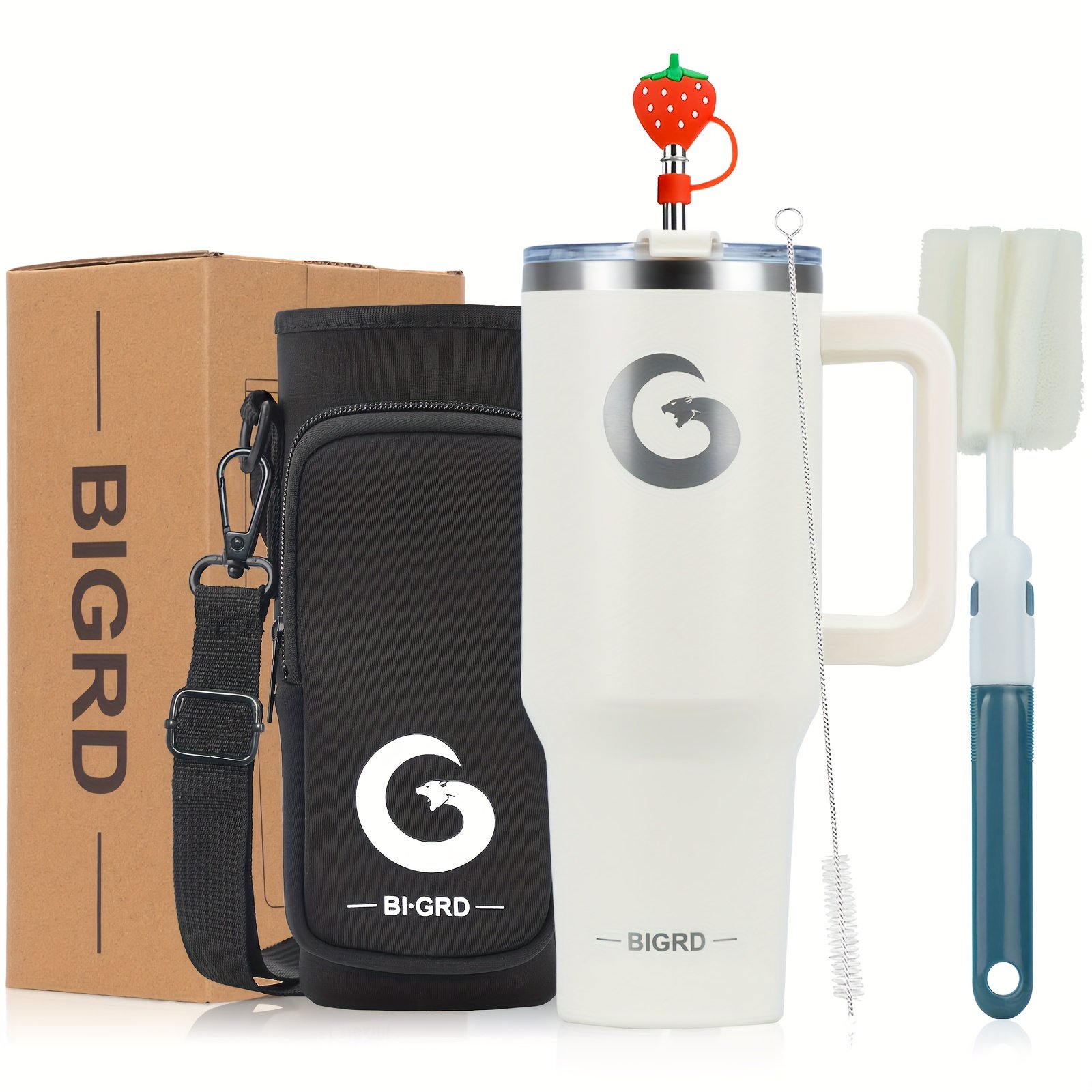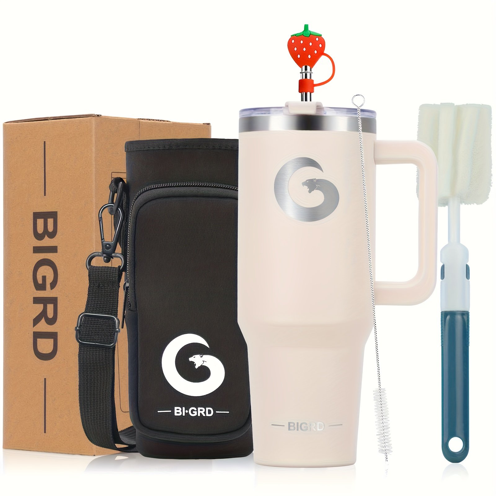 Home » Shop » 1 gobelet BIGRD de 40 oz avec poignée et paille, tasse de voyage entièrement étanche, en acier inoxydable avec isolation sous vide à double paroi pour le café, livré avec des accessoires comprenant un couvercle 2-en-1, une paille en acier, un nettoyant et un sac de transport