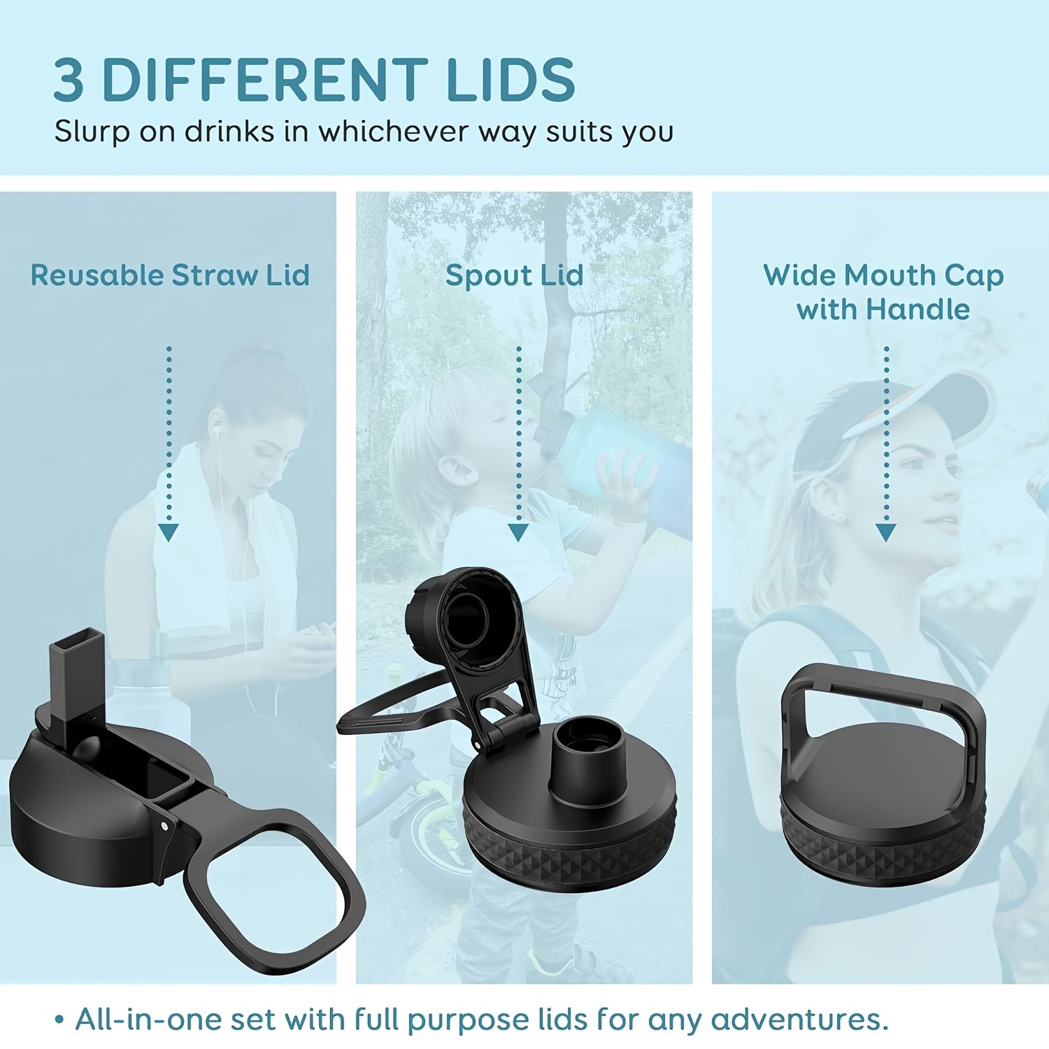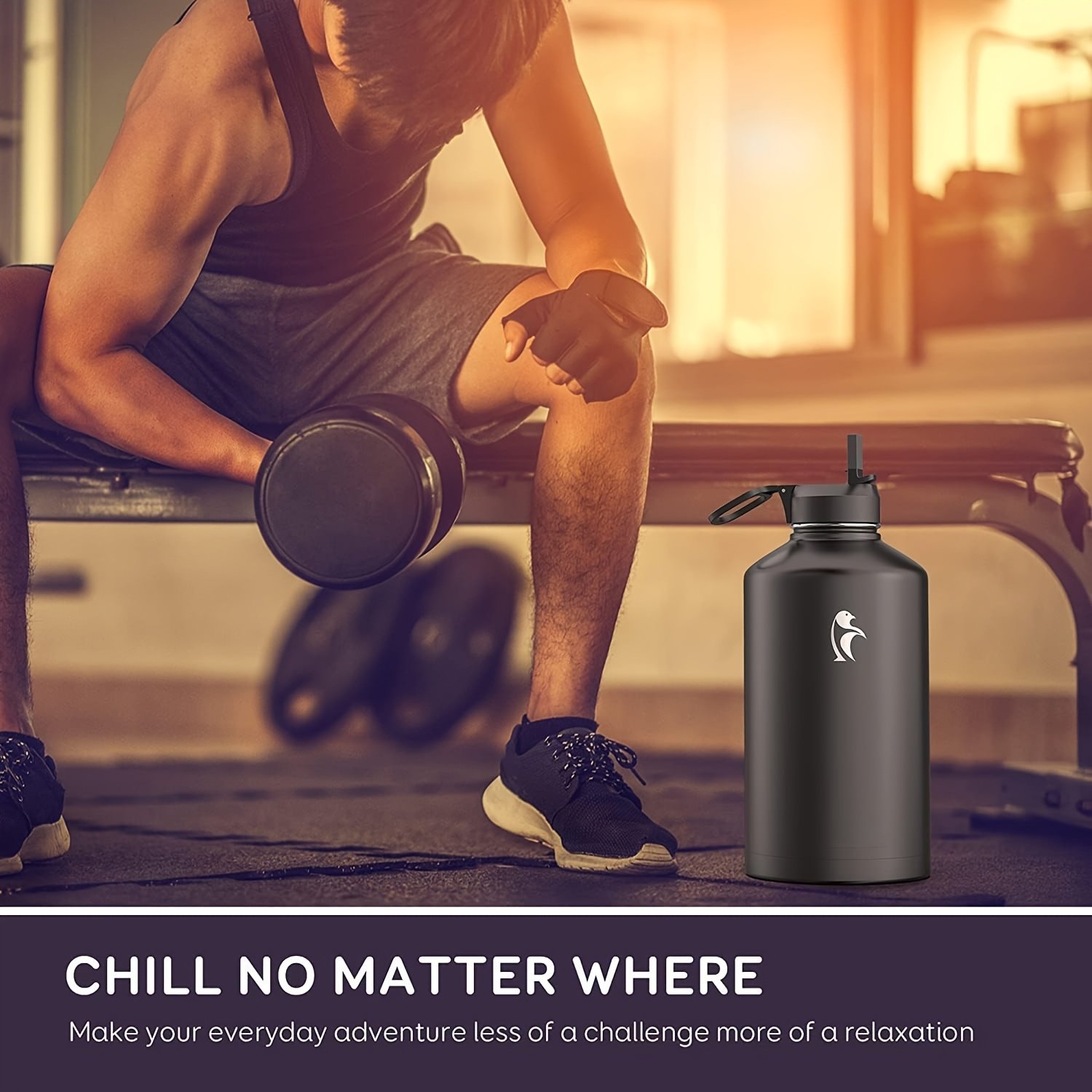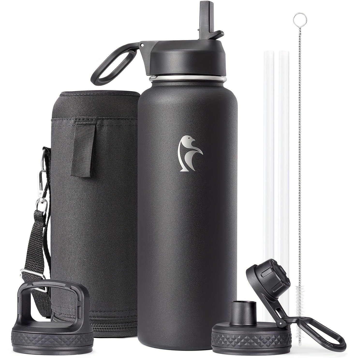 1pc Bouteille d’eau d’un gallon isolée avec paille et 3 couvercles, 128 oz grande carafe d’eau en acier inoxydable à double paroi sous vide à large ouverture pour le sport, la salle de sport ou le bureau, sans BPA, garde le froid pendant 48 heures et le chaud pendant 24 heures, bleu noir/noir