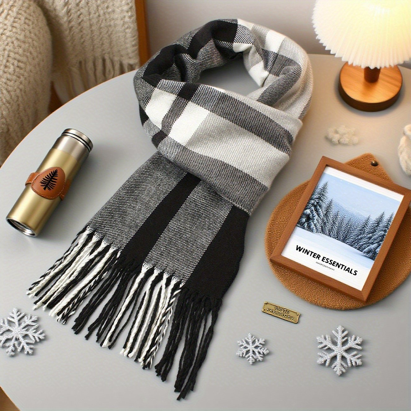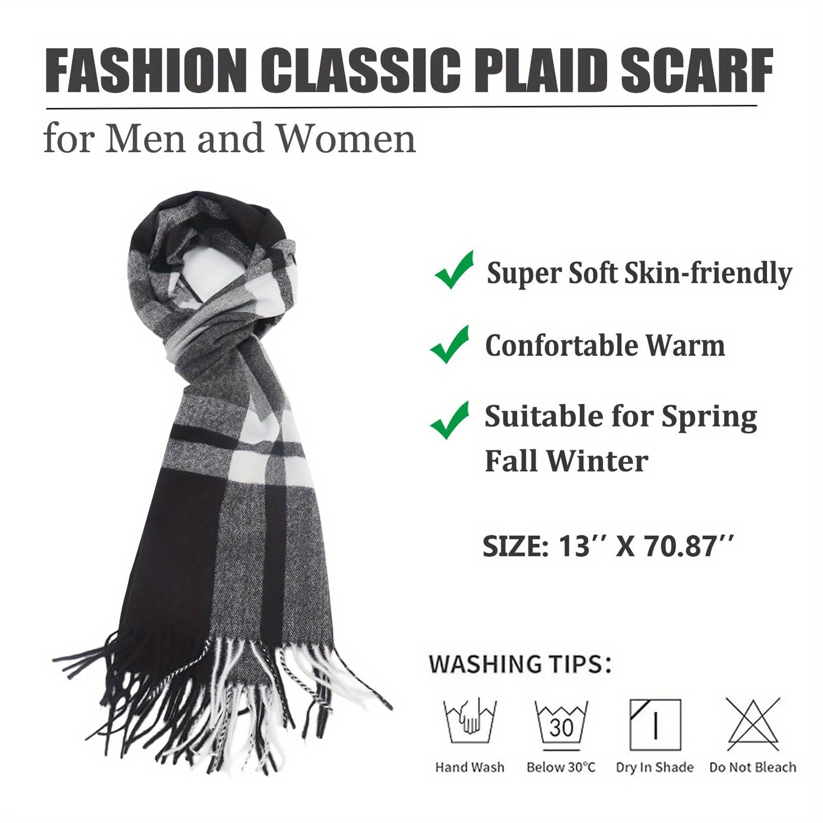 Écharpe à carreaux pour homme, hiver chaud et doux, motif tartan classique noir et blanc, couverture et châle polyvalents pour l’automne, l’automne et l’hiver, lavable en machine, cadeau de Noël, d’Action de Grâce et du Nouvel An pour lui, accessoire confortable et durable pour les tenues décontractées et formelles.