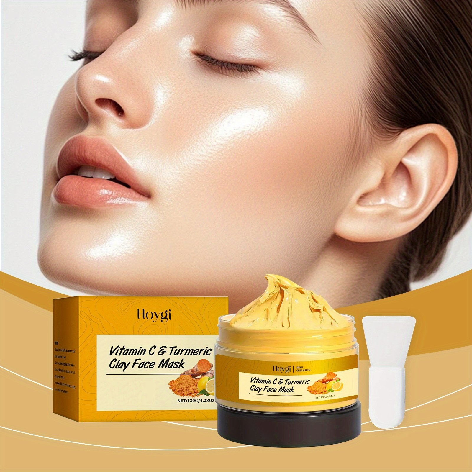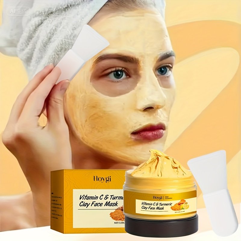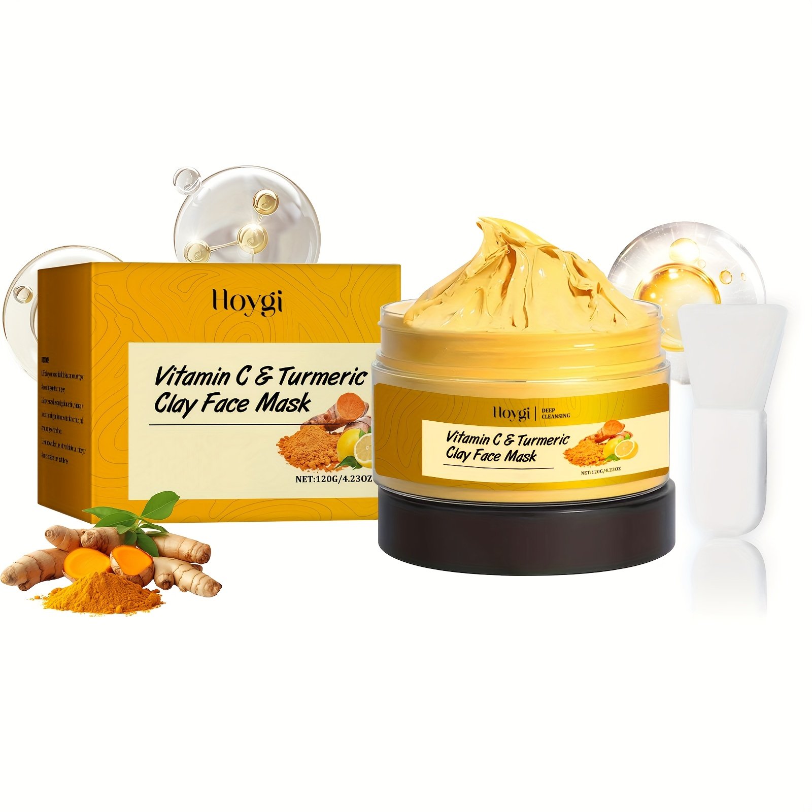 Masque de Boue à la Curcuma et Vitamine C Hoygi 3.38oz – Nettoyage Profond, Hydratant & Raffermissant, Masque en Kaolin et Aloe Vera pour un Teint Lumineux Beige Clair, Idée Cadeau Anniversaire pour Femmes et Hommes